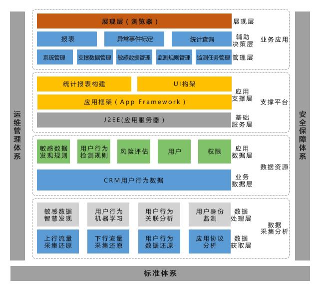 因此,建設業務規則審計監控,實現過戶、換套餐、營銷活動訂購等18項核心業務規則的及時審計分析、業務辦理量、越權操作等行為的審計和分析,及時發現系統存在的安全隱患。使相關部門和人員具備數據及時采集能力、業務規則結構化分析能力、異常結果標準化輸出能力及告警能力。中新網安基于自身對于關鍵業務數據安全防護經驗為用戶提出了以下解決方案: